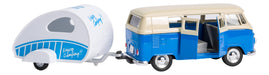 bug and teardrop trailer. Both items are packaged in a window-front red and turquoise box. The classic cherry-red VW Beetle toy car measures 8-inches and features see-through plastic windows, black wheels, shiny silver details, and a trailer hitch. Designed to model the old-school style campers of years past, the white and red teardrop camper has a side window and an attachment hook. • Age Grade: 3+ • Product Dimensions/Weight: 10.2 L x 2.9 W x 3.1 H / 0.4 lb • Inner Pack Dimensions/Weight: 10.5 L x 8.8 W x 6.6 H / 3.3 lb • Made In: China • Batteries not required