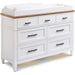 Spacious and stylish, the Parker House Artisan Double Dresser brings both form and function to your nursery. With seven generously sized drawers, it features soft-close glides, felt-lined top drawers, and cedar-lined bottoms to keep baby essentials neatly organized. Add the Parker House Artisan Changer Tray to create a secure changing station during the infant stage.