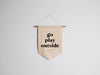 Add texture and personality to your walls while reminding your little ones to get some fresh air! This modern banner is a lovely mix of neutral, natural materials - including canvas, oak wood, and cotton twine - with all materials sourced in the United States, sewn locally, and printed in-house by hand. Each individual banner measures 14" wide by 20" tall from the top of the canvas to the bottom point.