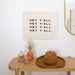 "Hey Y'all" repeated 4x. Sewn and screen printed by hand on natural canvas by Kenyan artisans.