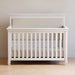 The Darlington 4-in-1 Crib brings the sophistication of relaxed French country style into the nursery. The Darlington balances delicate lines, gently detail molded tapered feet, and a lush upholstered back panel. Crib converts to a toddler bed, daybed, and full-size bed. Available in a Warm White finish.