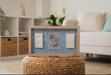 The 2 Prints Frame - Blue Abstract is designed to display two baby imprints and a photo.