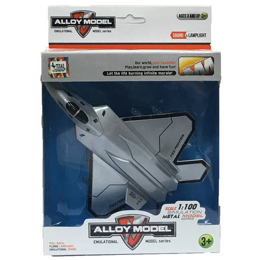 Texas Toy DistributionThis pullback F22 fighter jet comes in a peggable retail box.