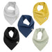 Set of 5 reversible, solid color drool bibs for both babies and toddlers ages 6 to 36 months.