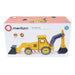 This toy comes on 4 wheels with 2 moving arms, and 2 black scoops on the front and back.