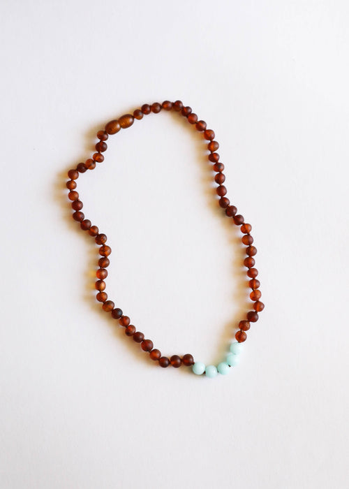 Raw Cognac Baltic Amber + Amazonite || Necklace