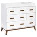 The Scoot 6-Drawer Dresser is the definition of mid-century modern style. The perfect accompaniment to your Scoot 3-in-1 Crib with matching tapered feet and two-toned or solid color detailing. With six smooth-glide drawers, this versatile unit provides a range of practical storage possibilities to suit all of your nursery needs.