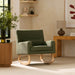 The well-balanced Sleepytime Rocker is lightly padded and finely upholstered with a fitted back using a subtly textured boucle fabric. Ash hardwood legs allow for a smooth rocking motion.