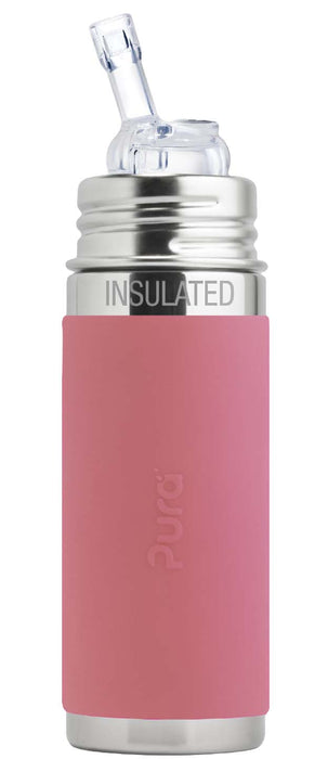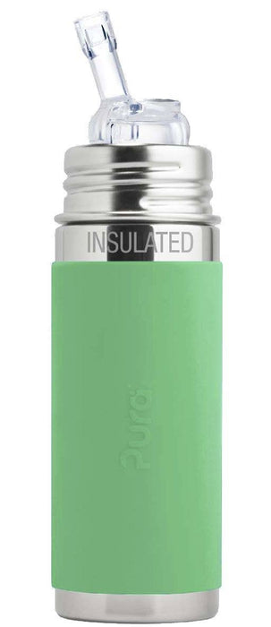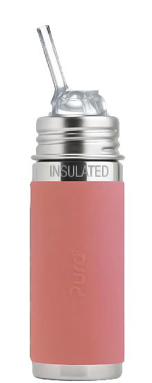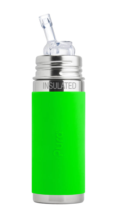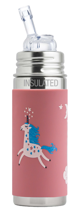 Our award winning 9oz insulated straw bottle is 100% plastic-free, environmentally progressive, and adapts to the needs of your growing child. Both the bottle and collar are crafted from safe, high grade #304 stainless steel. The 9oz insulated straw bottle is the ideal bottle for pre-k to early elementary school kids who prefer a warm or cold drink. This bottle includes a removable straw, travel cover, and colorful sleeve all comprised entirely from medical grade silicone.