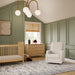 The Crewe Recliner blends form and function with its crisp, contemporary design and comfortable seat. Its smooth, back-and-forth gliding motion helps you rock your baby to sleep with ease, while the plush back cushion, hidden recline mechanism, and convenient swivel create an inviting repose for both you and your baby.