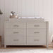 Complete your modern farmhouse nursery with the Hemsted 6-Drawer Dresser, featuring a premium texturized wood finish and elegant gold hardware that enhances the dresser's contemporary flair. Soft-closing, ball-bearing drawer glides make this dresser easy to use.