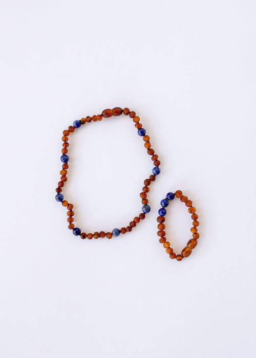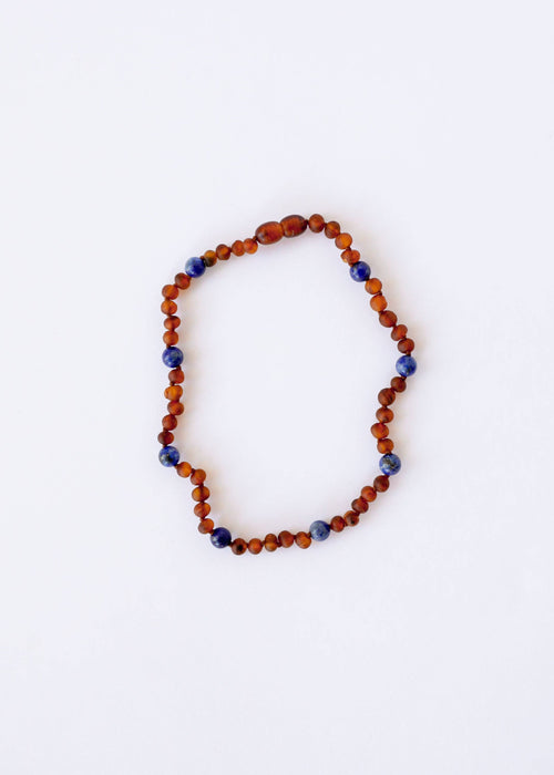 Raw Cognac Baltic Amber + Lapis Lazuli || Halo Necklace ||