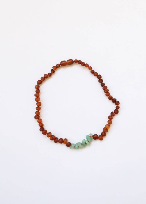 Raw Cognac Baltic Amber + Raw Aventurine || Necklace