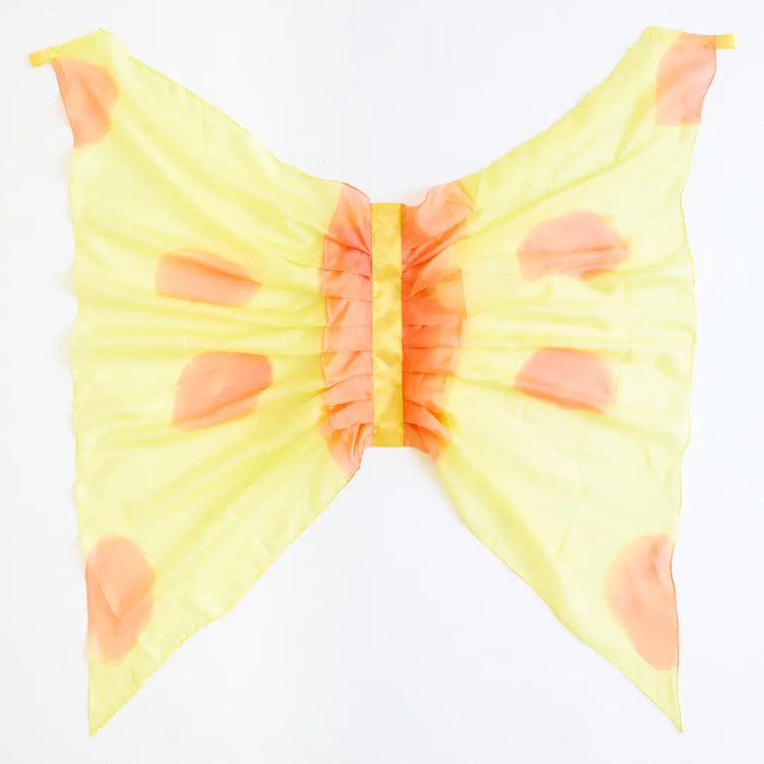 What could be more magical than having your own pair of Wings? Comfortable and versatile, our silk Wings have been a staple in dress-up boxes for over 27 years.  Elastic loops make our Wings easy for children to slip on and off all by themselves, with enough stretch to fit comfortably over clothing for imaginative dress-up styling. We designed our Wings to be simple and open-ended so children can imagine they are any number of things. A few of our favorite ideas are... * Dragons * Birds * Lady Bugs * Bats * and more... Our Wings are: * 100% real silk * painted and silk-screened by hand * eco-friendly, made with non-toxic dye