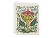 Blank inside. 100lb heavyweight card stock. Offset printed. 4.25 x 5.5 inches. Illustrated by Melissa Castrillon. Printed by Red Cap Cards in Los Angeles, California, USA, on recycled paper.