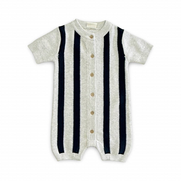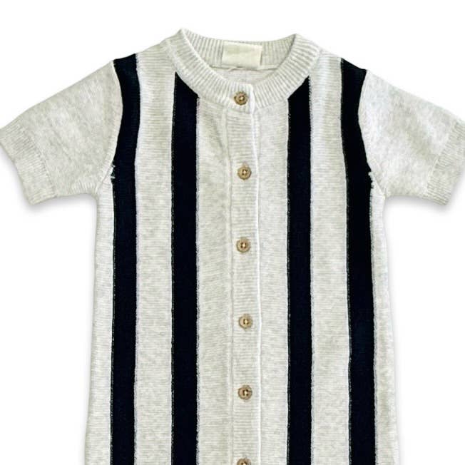 Viverano Organics Stripe Knit Classic Button Baby Romper (Organic Cotton)